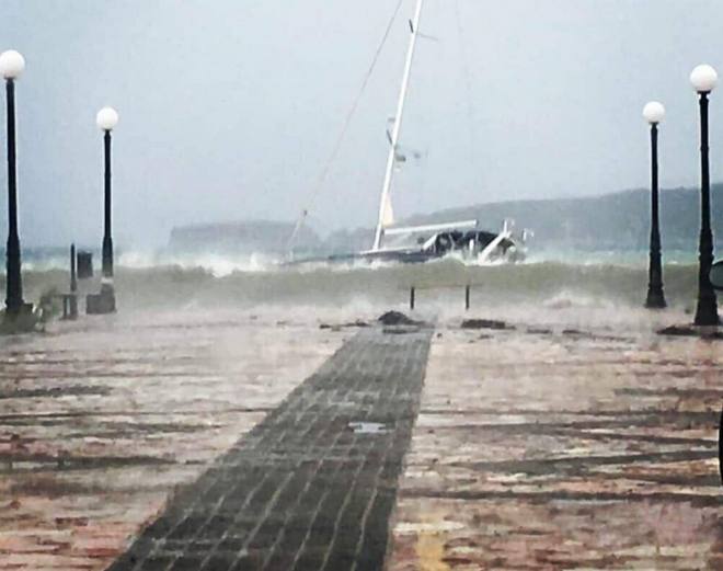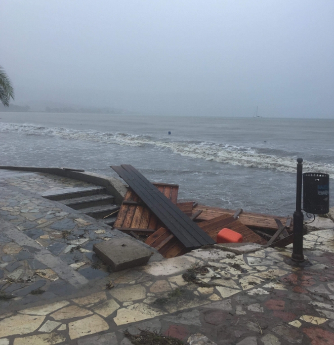 Στην παραλία της Γιάλοβας χτυπούν μεγάλα κύματα και ισχυροί άνεμοι, έχοντας προκαλέσει ήδη ζημιές σε επιχειρήσεις.