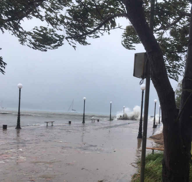 Μάλιστα ο δρόμος που ενώνει τις δύο περιοχές έχει κλείσει από την πτώση δένδρων. Στην παραλία της Γιάλοβας χτυπούν μεγάλα κύματα και άνεμοι έχοντας προκαλέσει ήδη ζημιές σε επιχειρήσεις.