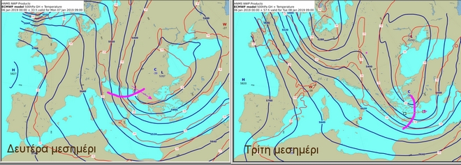 Ψυχρές αέριες μάζες στην ανώτερη ατμόσφαιρα αλλά και στις κατώτερες στάθμες θα εισβάλλουν από την ανατολική Ευρώπη και θα προκαλέσουν και πάλι χιονοπτώσεις στα ανατολικά τμήματα της χώρας μας.
