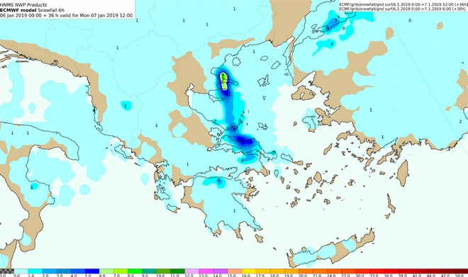 Κατά τις βραδινές ώρες οι χιονοπτώσεις θα εξασθενήσουν στα βορειότερα τμήματα και κυρίως στη Χαλκιδική, ωστόσο στα υπόλοιπα θα ενταθούν και θα επεκταθούν νοτιότερα.