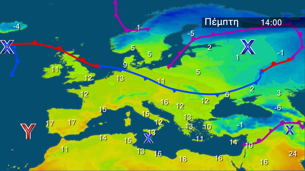 Δεν υπάρχει άμεσα κάποιο σύστημα να μας επηρεάσει και μόνο το Σαββατοκύριακο το σύστημα που βρίσκεται στη κεντρική Ευρώπη θα κινηθεί νοτιότερα και θα επηρεάσει μερικώς τη χώρα μας με βροχές