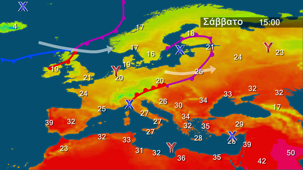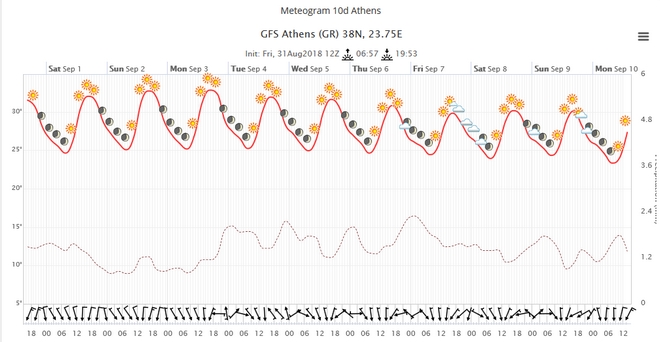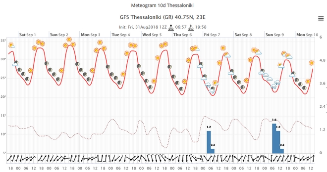 Στους χάρτες της Ευρώπης μπορούμε να διακρίνουμε ότι δεν υπάρχουν οργανωμένα συστήματα, τα οποία μπορούν να μας επηρεάσουν. Ενδεικτικά παραθέτουμε το μετεώγραμμα της Αθήνας και της Θεσσαλονίκης για το επόμενο δεκαήμερο όπου είναι σαφής αυτή η μικρή πτώση της θερμοκρασίας και τα τοπικά φαινόμενα στη Θεσσαλονίκη.