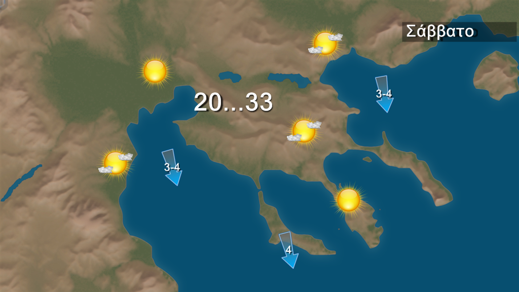 Στην Αττική προβλέπεται αίθριος καιρός. Οι άνεμοι θα πνέουν Βόρειοι 4 με 5 και τοπικά στα ανατολικά 6 μποφόρ.  Η θερμοκρασία θα κυμανθεί από 20 έως 34 βαθμούς Κελσίου.