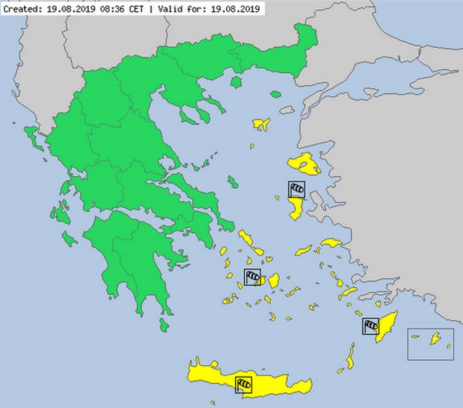 Ο χάρτης που δημοσίευσε το meteoalarm.eu για τους ενισχυμένους ανέμους και τον κίτρινο συναγερμό: