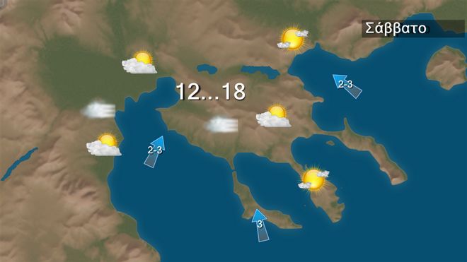 Στη χώρα μας το Σάββατο οι βροχές θα είναι λίγες και ασθενείς στα ανατολικά και νότια και θα έχουμε αρκετή ηλιοφάνεια και περιορισμένη ορατότητα τις πρωινές ώρες στα ηπειρωτικά. Οι άνεμοι θα πνέουν από βορειοανατολικές διευθύνσεις 4 με 5 μποφόρ στο Αιγαίο και ανατολικοί 3 με 4 στο Ιόνιο. Η θερμοκρασία στα βόρεια θα φτάσει τους 19 βαθμούς και στα υπόλοιπα τους 20 με 22 βαθμούς Κελσίου.