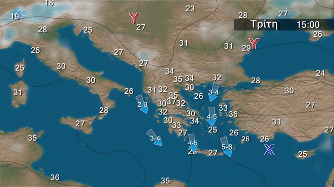 - Οι άνεμοι θα φτάνουν το πολύ τα 5-6 μποφόρ μέχρι και την Τετάρτη