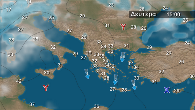 Στη χώρα μας σήμερα αλλά και το επόμενο τριήμερο θα επικρατήσει σχεδόν αίθριος καιρός με μελτέμι έως 7 στα νότια που θα εξασθενήσει από την Κυριακή. Η θερμοκρασία θα φτάσει τοπικά τους 36 βαθμούς Κεσλσίου.
