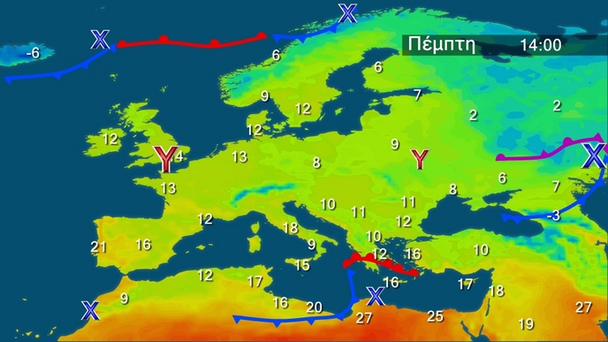Μεταβολή του καιρού από τα δυτικά με βροχές και σποραδικές καταιγίδες