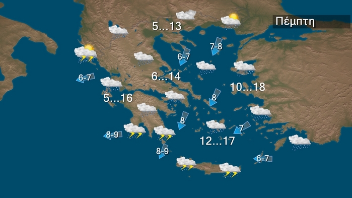 Επιδείνωση θα παρουσιάσει ο καιρός την Πέμπτη κυρίως στη Δυτική και τη Νότια νησιωτική χώρα σύμφωνα με το έκτακτο δελτίο που εξέδωσε η ΕΜΥ , με βροχές και καταιγίδες τοπικά ισχυρές στα δυτικά και βαθμιαία στα υπόλοιπα νότια . Παράλληλα θα έχουμε σημαντική πτώση της θερμοκρασίας της τάξεως των 8 περίπου βαθμών το επόμενο διήμερο και χιονοπτώσεις στα ορεινά της ηπειρωτικής χώρας και της Κρήτης.