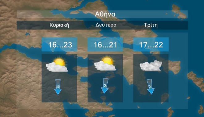 Στην Αθήνα προβλέπονται τοπικές νεφώσεις. Η θερμοκρασία θα έχει μέγιστες τιμές περί τους 21 με 23 βαθμούς Κελσίου.