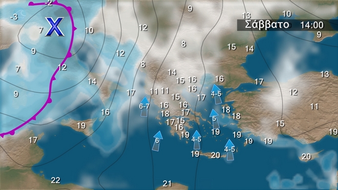 Οι άνεμοι θα πνέουν από νότιες διευθύνσεις 3 με 5 μποφόρ, στο Ιόνιο από το απόγευμα 6 και τη νύχτα τοπικά 7 μποφόρ. Η θερμοκρασία θα σημειώσει μικρή άνοδο.