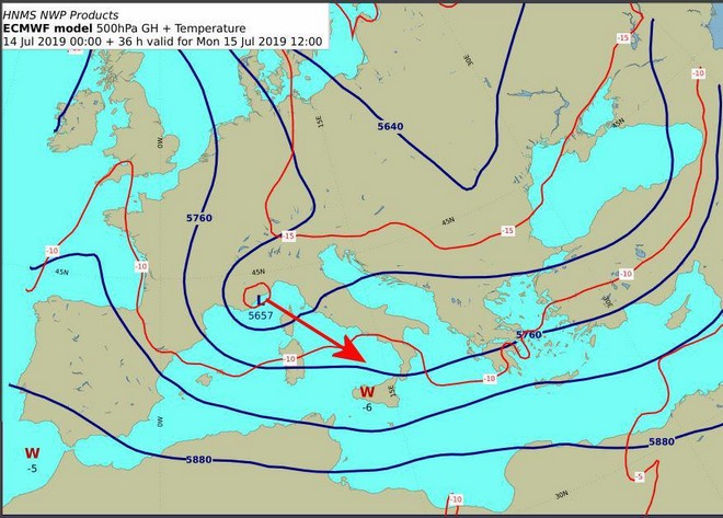 Από τον κόλπο της Γένοβας τη Δευτέρα από το μεσημέρι και μετά δημιουργείται ένα χαμηλό στην ανώτερη ατμόσφαιρα, το οποίο θα κινηθεί ανατολικά και την Τρίτη και Τετάρτη θα προκαλέσει νέα μεταβολή του καιρού στη χώρας μας με τοπικά έντονη αστάθεια.