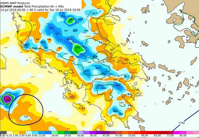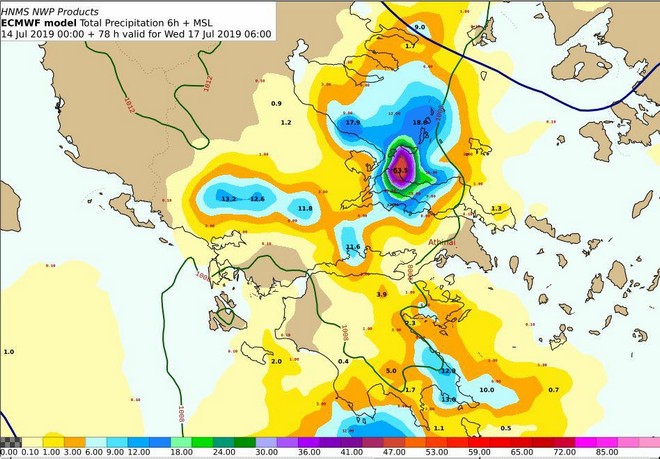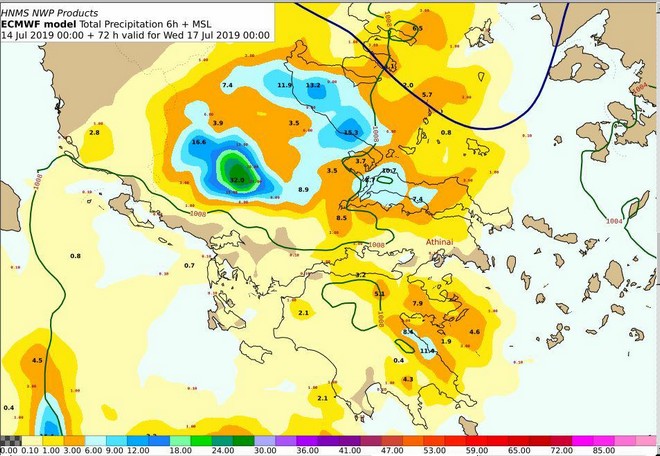 Μεγάλα ύψη βροχής θα έχουμε και το βράδυ της Τετάρτης (Τετάρτη 0000utc) .