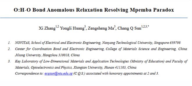 Ωστόσο, οι φυσικοί Xi Zhang ,Yongli Huang , Zengsheng Ma και Chang Q Sun υποστηρίζουν ότι έδωσαν μια πιο ολοκληρωμένη ερμηνεία του φαινομένου παίρνοντας υπόψη τους τις μοριακές αλληλεπιδράσεις μεταξύ των μορίων του νερού. Έτσι, κατέληξαν στο συμπέρασμα πως το εν λόγω φαινόμενο συμβαίνει γιατί το ζεστό νερό μεταφέρει την ενέργεια του εκθετικά γρηγορότερα.