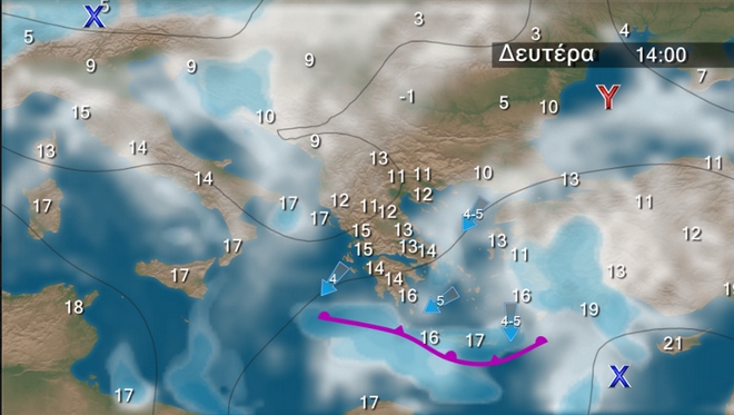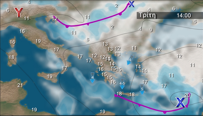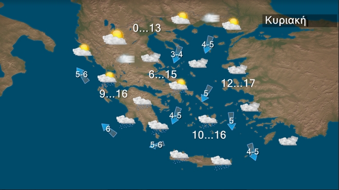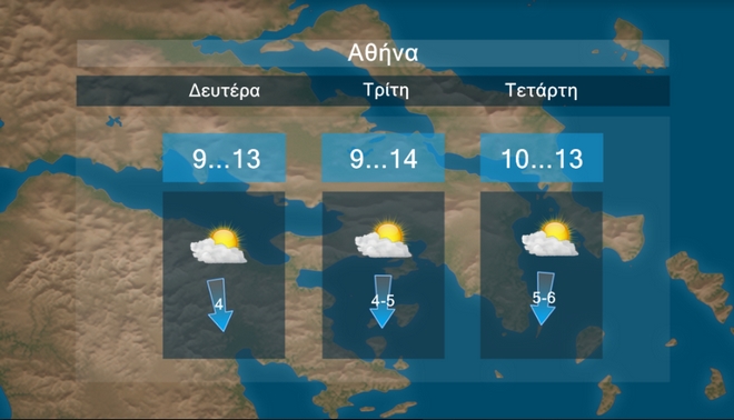 Την Τετάρτη θα ενισχυθούν οι άνεμοι στο Αιγαίο και τοπικά θα φτάσουν τα 6 με 7 μπ και θα πέσει λίγο η θερμοκρασία στα Βόρεια τα ανατολικά.