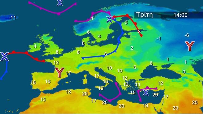 Η πρόγνωση για τον καιρό της Τρίτης από τον μετεωρολόγο Θοδωρή Κολυδά.