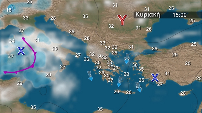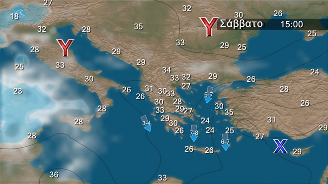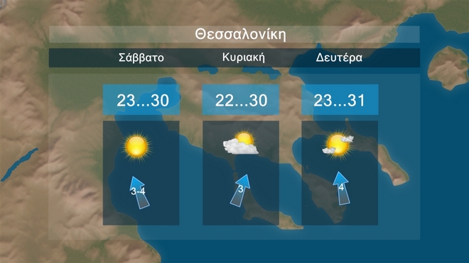 Γενικά αίθριος καιρός με λίγες πρόσκαιρες νεφώσεις τις πρωινές ώρες στις Κυκλάδες και την Κρήτη. Τις μεσημβρινές και απογευματινές ώρες στα δυτικά και βόρεια ηπειρωτικά θα αναπτυχθούν τοπικές νεφώσεις. Οι άνεμοι θα πνέουν από βόρειες διευθύνσεις στα δυτικά 3 με 5, στα ανατολικά 4 με 6 και στο Αιγαίο τοπικά 7 μποφόρ. Η θερμοκρασία δεν θα σημειώσει αξιόλογη μεταβολή.
