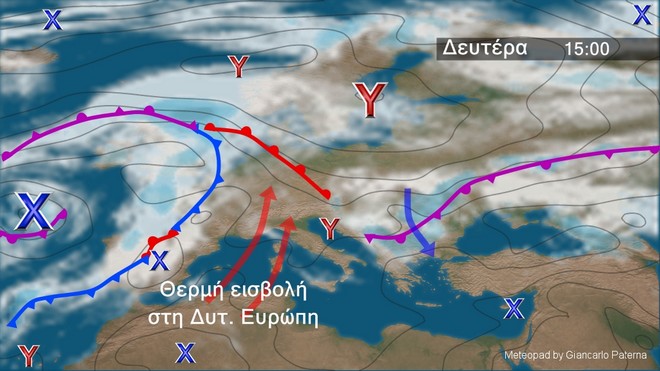 Στον γενικό χάρτη της Ευρώπης διακρίνεται το βαρομετρικό χαμηλό που επηρεάζει τη δυτική Ευρώπη. Το σύστημα αυτό δημιουργεί ισχυρό νοτιοδυτικό ρεύμα στις ανώτερες στάθμες της ατμόσφαιρας και με αυτόν τον τρόπο μεταφέρονται θερμές αέριες μάζες από τις ακτές της Αλγερίας βορειότερα. Η ροή αυτή δημιουργείται καθότι απουσιάζει ο αντικυκλώνας των Αζορών που συνήθως βρίσκεται αυτή την περίοδο ενισχυμένος.
