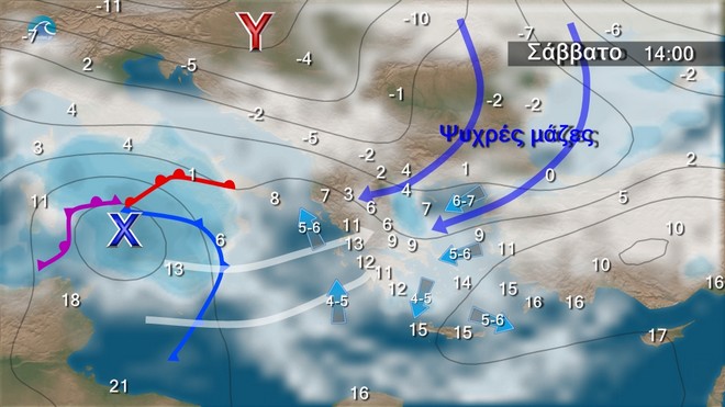 Πάντως στις κατώτερες στάθμες ο καιρός δείχνει ότι θα κρυώσει σημαντικά και αυτό πρακτικά σημαίνει ότι θα έχουμε χιονοπτώσεις όχι μόνο σε ορεινά και ημιορεινά αλλά, ακόμη και σε περιοχές με χαμηλότερο υψόμετρο στα κεντρικά και βόρεια. Αν είχαμε παράλληλα εντονότερη κατάβαση ψυχρών μαζών και στα 500 hPa με ΒΑ ρεύμα η κατάσταση θα ήταν εντονότερη. Μάλιστα, θυμίζουμε ότι στις κλασικές περιπτώσεις όπου δημιουργούνται επιφανειακά χαμηλά στο Ιόνιο ή το Αιγαίο Πέλαγος και αυτά συνδυάζονται με τον αντικυκλώνα που ακολουθεί, μπορούν να προκαλέσουν έντονα καιρικά φαινόμενα σε όλη την χώρα.