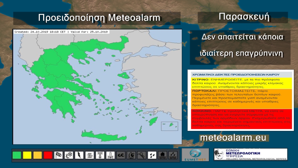 Ξέρετε ότι: Σαν σήμερα στις 25 Οκτωβρίου 2004 είχαμε ισχυρές καταιγίδες στην Πελοπόννησο. Και το 2009 ισχυρές βροχοπτώσεις στην Κρήτη με 177 χιλιοστά βροχής στο Τζερμιάδον Λασιθίου. Το 2015 είχαμε πλημμύρα στα Ανώγεια και εμφανίστηκε υδροσίφωνας στη Ρόδο.