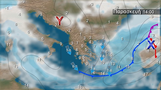- Βροχές και καταιγίδες στα νότια θαλάσσια τμήματα και χιονοπτώσεις στα κεντρικά και βόρεια ακόμη και σε πεδινά –Πρόσκαιρη ύφεση το Σάββατο