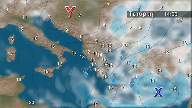 Την Τετάρτη ενισχύονται οι βοριάδες τοπικά στα 7 μποφόρ στο Αιγαίο, ενώ την Πέμπτη ενδέχεται να φτάσουν πρόσκαιρα και τα 7 με 8 μποφόρ.