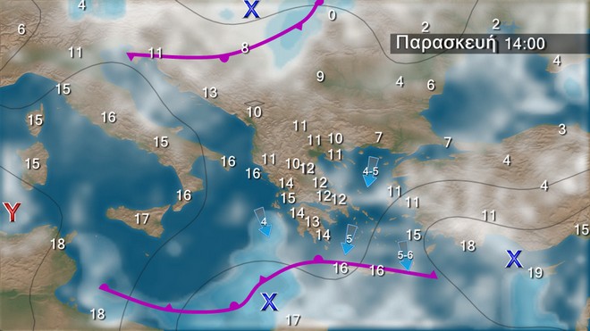 Από την Παρασκευή οι άνεμοι θα εξασθενήσουν και η θερμοκρασία θα παρουσιάσει πτώση στα Βόρεια και τα Ανατολικά.