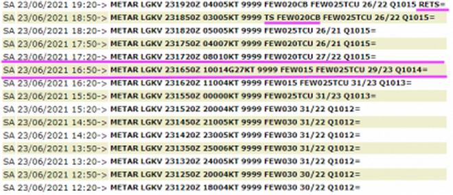 Οι επίσημε καταγραφές αποτυπώνονται παραπάνω. Όσοι έχουν την δυνατότητα να διαβάσουν Metar (μετεωρολογική αεροναυτική παρατήρηση με κωδικοποίηση) θα διαπιστώσουν αυτή την αλλαγή του ανέμου από ΝΔ σε Α καθώς και την ενίσχυσή του . Το πέρας της όλης κατάστασης περατώνεται για την περιοχή στις 19:20 που η παρατηρήτρια δίνει την ένδειξη RETS δηλαδή παρελθούσα καταιγίδα.
