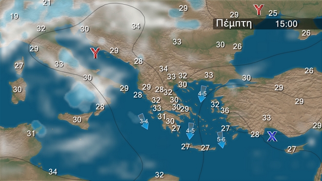 Την Πέμπτη προβλέπεται καιρός γενικά αίθριος, με παροδικές νεφώσεις τις μεσημβρινές και απογευματινές ώρες στα ηπειρωτικά κυρίως ορεινά. Οι άνεμοι θα πνέουν από βόρειες διευθύνσεις 3 με 4 και στο Αιγαίο τοπικά 5-6 μποφόρ. Η θερμοκρασία δεν θα αλλάξει σημαντικά.