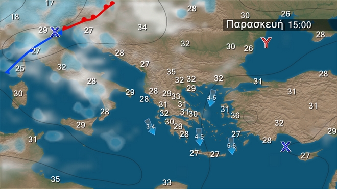 Την Παρασκευή θα επικρατήσει γενικά αίθριος καιρός με παροδικές νεφώσεις στα ηπειρωτικά τις μεσημβρινές και απογευματινές ώρες με τοπικούς όμβρους και πιθανός μεμονωμένες καταιγίδες στα ορεινά κυρίως βορειοδυτικά.. Οι άνεμοι θα πνέουν από βόρειες διευθύνσεις 3 με 5 και στο Αιγαίο τοπικά 6 μποφόρ με τάση εξασθένησης. Η θερμοκρασία θα ανέβει λίγο.