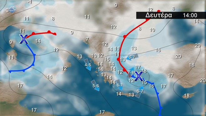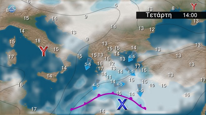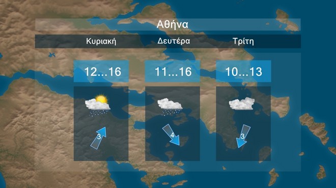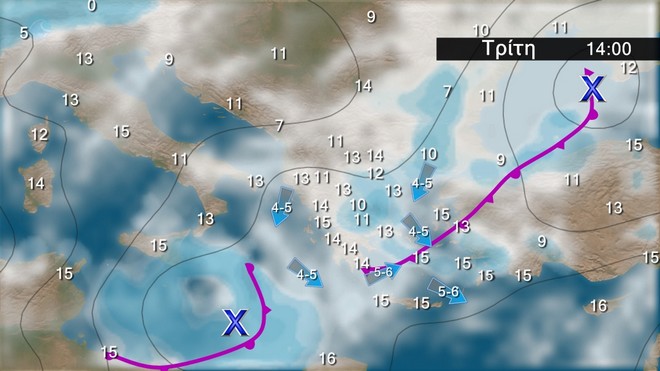 Οι άνεμοι θα έχουν μέγιστη ένταση τα 4 μποφόρ και η θερμοκρασία θα έχει μέγιστες τιμές περί τους 13 με 16 βαθμούς Κελσίου.