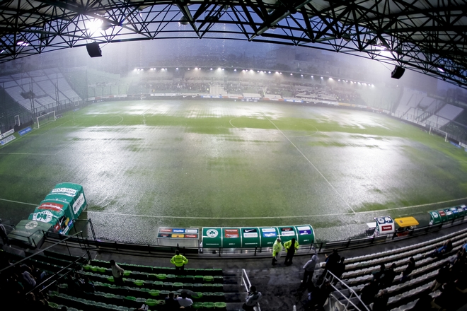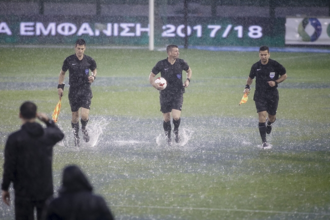 Σε πισίνα μετεβλήθη ο αγωνιστικός χώρος στη Λεωφόρο Αλεξάνδρας, με αποτέλεσμα να διακοπεί ο αγώνας της τελευταίας αγωνιστικής του πρωταθλήματος μεταξύ ΠΑΟ και Ξάνθης. Ύστερα από λεπτά λεπτά αγώνα, ωστόσο, ο διαιτητής Στυλιαράς αποφάσισε να διακόψει το παιχνίδι εξαιτίας της δυνατής βροχής.