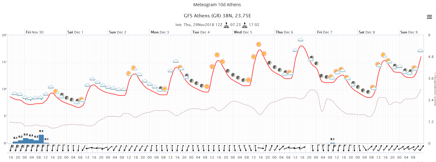 Στη μεσοπρόθεσμη προοπτική του καιρού για την Αθήνα το επόμενο δεκαήμερο δεν προβλέπονται βροχές με βάση τα τελευταία προγνωστικά στοιχεία. Μέγιστες θερμοκρασίες περί τους 15 βαθμούς.