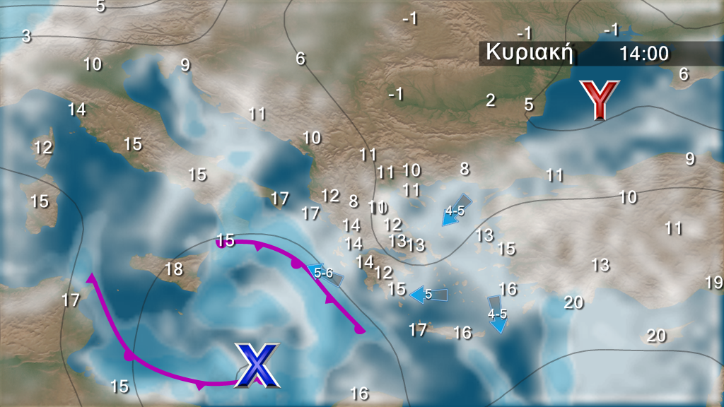 Την Κυριακή ο καιρός θα είναι βροχερός στα δυτικά και νότια ενώ στην υπόλοιπη χώρα θα υπάρχει τοπική συννεφιά με πιθανότητα λίγων φαινομένων. Οι άνεμοι δεν θα ξεπερνούν τα 5 με 6 μπ στα πελάγη και θα ανέβει η θερμοκρασία