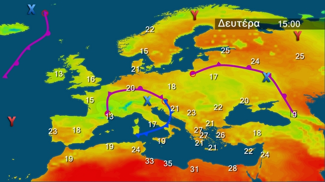 Στη χώρα μας η αστάθεια θα είναι περιορισμένη κυρίως στα δυτικά και βόρεια ηπειρωτικά . Την Τρίτη ίσως εκδηλωθούν τοπικά έντονα φαινόμενα στα Βορειοδυτικά.