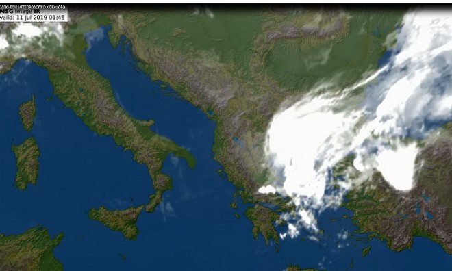 Το σύστημα αυτό περνά από Στερεά Ελλάδα ( και από Αττική) . Στα αριστερά της φωτογραφίας διακρίνεται η εκτεταμένη νεφική ζώνη και αυτή η διαταραχή που υπάρχει στα βορειοδυτικά της Ελλάδος είναι η ΚΥΡΙΑ ΔΙΑΤΑΡΑΧΗ που προκάλεσε το μπουρίνι.