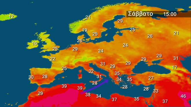 Το Σάββατο οι μέγιστες θερμοκρασίες θα φτάσουν στο εσωτερικό της κεντρικής ηπειρωτικής χώρας τους 37 και τοπικά τους 38 βαθμούς. Οι περιοχές που θα επηρεαστούν θα είναι τα Δυτικά τμήματα της Θεσσαλίας και μερικώς της Στερεάς Ελλάδος.