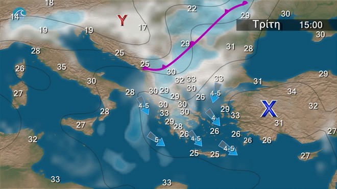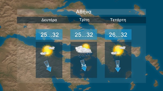 Το επόμενο τριήμερο θα έχουμε λίγες νεφώσεις αλλά την Τρίτη στην Αθήνα θα εκδηλωθεί αστάθεια Η θερμοκρασία θα υποχωρήσει βαθμιαία στους 32 βαθμούς Κελσίου