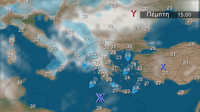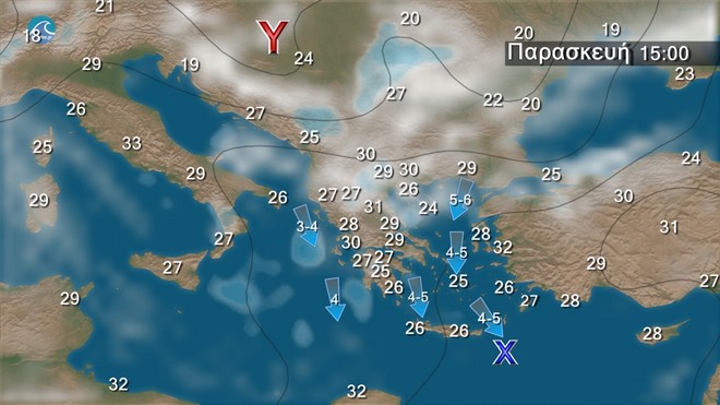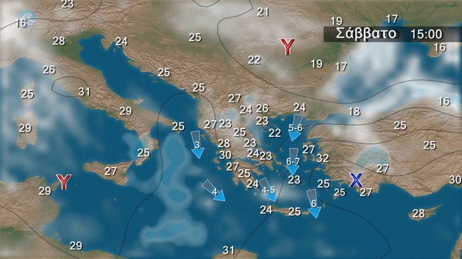 - Οι άνεμοι στο Αιγαίο θα φτάνουν τα 5 με 6 και κατά περιόδους τα 6-7 μποφόρ