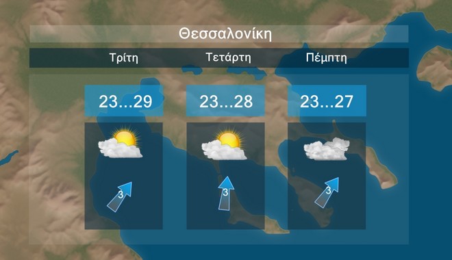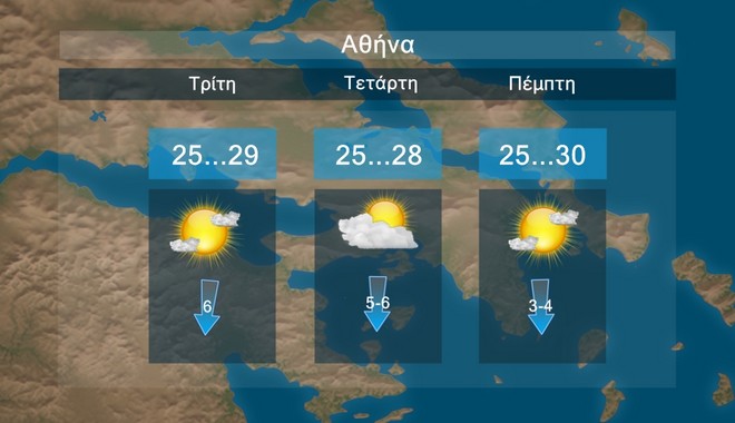 Στην Αθήνα προβλέπονται τοπικές νεφώσεις κατά διαστήματα. Η θερμοκρασία θα κυμαίνεται περί τους 28 με 30 βαθμούς Κελσίου.