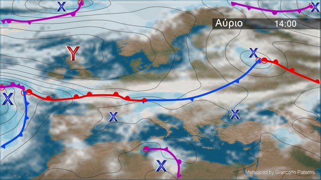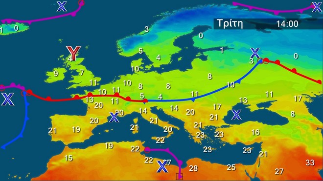Στον γενικό χάρτη της Ευρώπης διακρίνονται ισχυρά βαρομετρικά χαμηλά στα Δυτικά και Ανατολικά της Ευρώπης. Τα χαμηλά που υπάρχουν στις ακτές της Αφρικής και στην Ανατολική Μεσόγειο δεν θα μας επηρεάσουν.