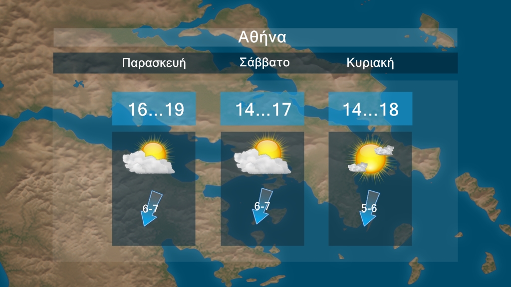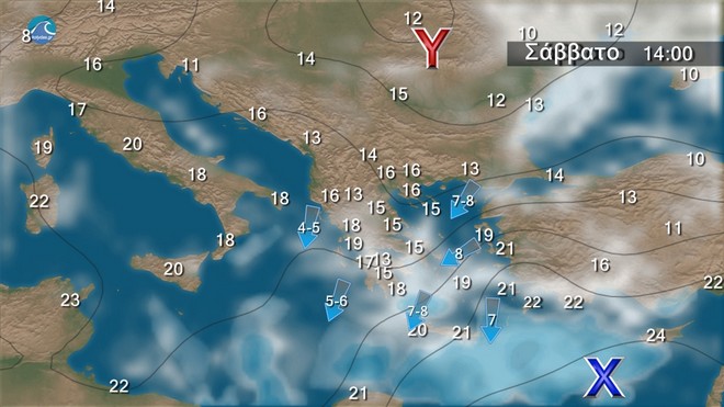 Οι άνεμοι θα παρουσιάσουν πρόσκαιρη ενίσχυση την Παρασκευή και το Σάββατο και θα φτάσουν τα 7 με 8 μποφόρ στο Αιγαίο