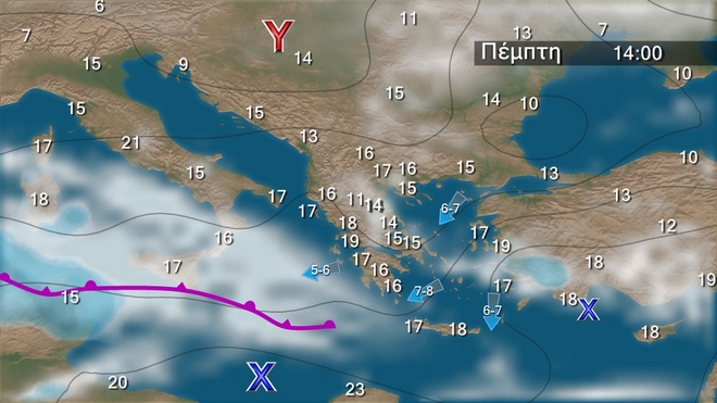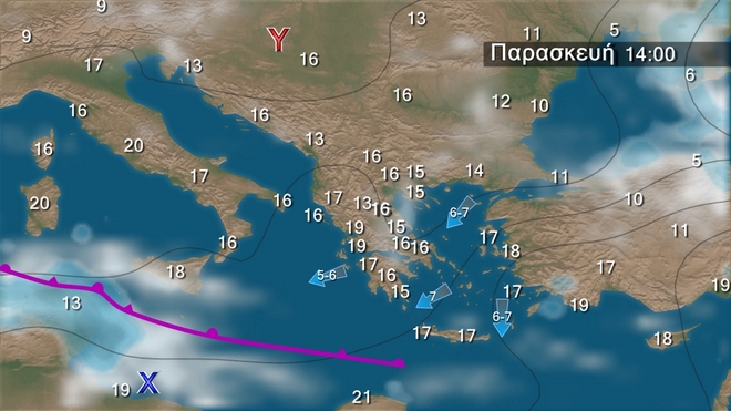 Πάντως το ερχόμενο Σαββατοκύριακο θα έχουμε μικρή άνοδο της θερμοκρασίας και μόνο τοπικές νεφώσεις με βοριάδες έως 7 μπ στο Αιγαίο.