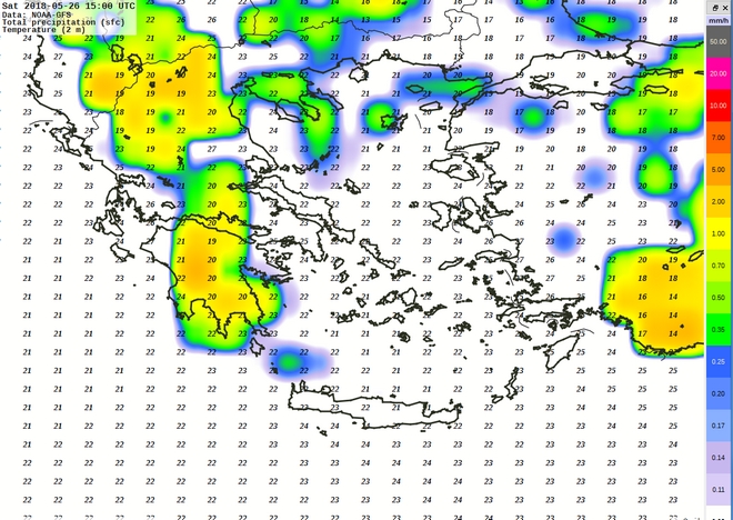 Στο video που ακολουθεί μπορείτε να δείτε της εξέλιξη του καιρού από το πρωί του Σαββάτου έως και το βράδυ της Δευτέρας. Αποτυπώνονται ανά τρίωρο οι περιοχές των βροχοπτώσεων και οι προβλεπόμενες θερμοκρασίες, οι οποίες θα κυμαίνονται στα επίπεδα των 26 -28 βαθμών στα ηπειρωτικά.