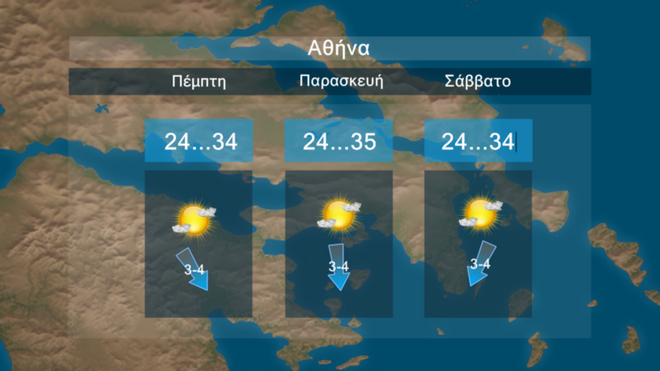Στην Αττική προβλέπεται σχεδόν αίθριος καιρός με λίγες νεφώσεις το μεσημέρι και το απόγευμα στα βόρεια. Η θερμοκρασία θα φτάσει τους 32 βαθμούς Κελσίου.