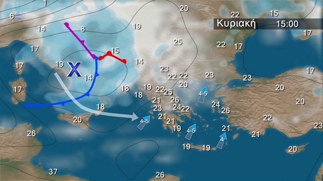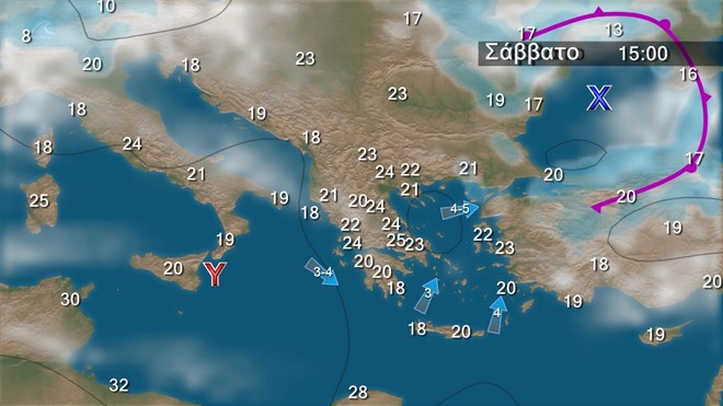 Στην ανατολική Μακεδονία και τη Θράκη, προβλέπονται λίγες νεφώσεις παροδικά αυξημένες με τοπικούς όμβρους ή καταιγίδες κυρίως τις μεσημβρινές και απογευματινές ώρες και βελτίωση από το βράδυ. Στην υπόλοιπη χώρα γενικά αίθριος καιρός, με πρόσκαιρες νεφώσεις στα ηπειρωτικά τις μεσημβρινές και απογευματινές ώρες, οπότε θα εκδηλωθούν τοπικοί όμβροι κυρίως στα ορεινά της κεντρικής Στερεάς και της Πελοποννήσου. Οι άνεμοι θα πνέουν από βόρειες διευθύνσεις 3 με 5, που βαθμιαία από τα βόρεια θα στραφούν σε νότιους 3 με 4 μποφόρ. Η θερμοκρασία δεν θα σημειώσει αξιόλογη μεταβολή.