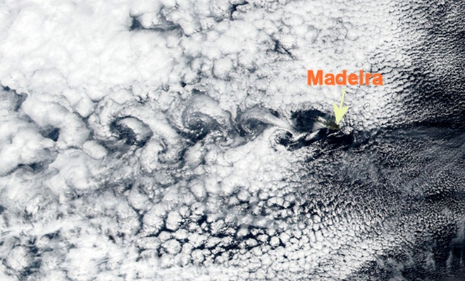 Μεγάλες αλυσίδες των σπειροειδών δινών παρατηρήθηκαν πριν λίγες ημέρες στον Ατλαντικό Ωκεανό στην περιοχή της νήσου Madeira. Συγκεκριμένα στις 4 Φεβρουαρίου 2019 οι δορυφόροι κατέγραψαν ένα σχετικά σπάνιο φαινόμενο, το οποίο στη δεκαετία του ‘30 για πρώτη φορά μελετήθηκε από τον Ούγγρο-Αμερικανό φυσικό Theodore von Kármán. Προς τιμή του από την επιστημονική κοινότητα η ονομασία αυτών των δινών πήρε το όνομά του.