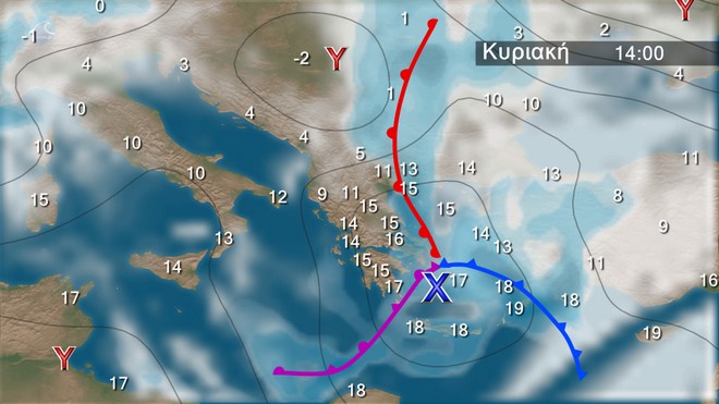Βροχερός θα είναι ο καιρός την Κυριακή στην ανατολική και τη βόρεια χώρα με φαινόμενα κατά τόπους πιθανόν έντονα στο ανατολικό Αιγαίο. Τα φαινόμενα σταδιακά θα σταματήσουν στα δυτικά ενώ τη Δευτέρα τα φαινόμενα πρόσκαιρα θα σταματήσουν. Από την Τρίτη θα μας επηρεάσει άλλο βαρομετρικό χαμηλό.