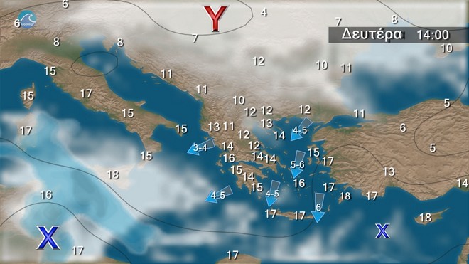 Προβλέπεται γενικά αίθριος καιρός, με τοπικά αυξημένες νεφώσεις στα ανατολικά και τα νότια, όπου υπάρχει πιθανότητα ασθενών βροχών κυρίως στην Κρήτη. Οι άνεμοι θα πνέουν στα δυτικά και τα βόρεια μεταβλητοί 3 με 4 μποφόρ. Στις υπόλοιπες περιοχές από βόρειες διευθύνσεις 3 με 5 και πρόσκαιρα στο Αιγαίο τοπικά 6 μποφόρ. Η θερμοκρασία θα σημειώσει άνοδο ως προς τις μέγιστες τιμές της, όμως παγετός θα σημειωθεί κατά τόπους στα βόρεια τις πρωινές και βραδινές ώρες.