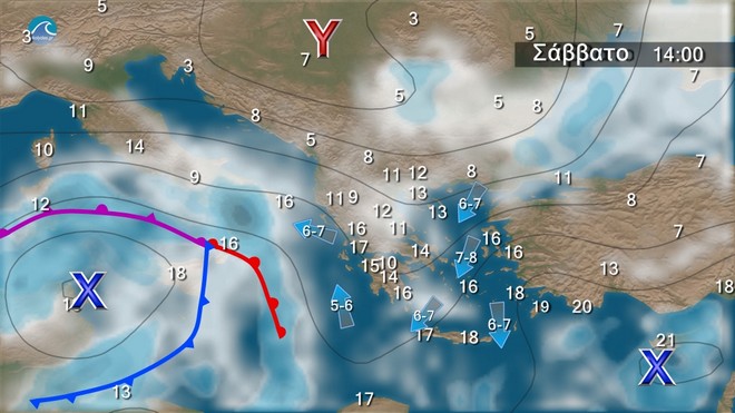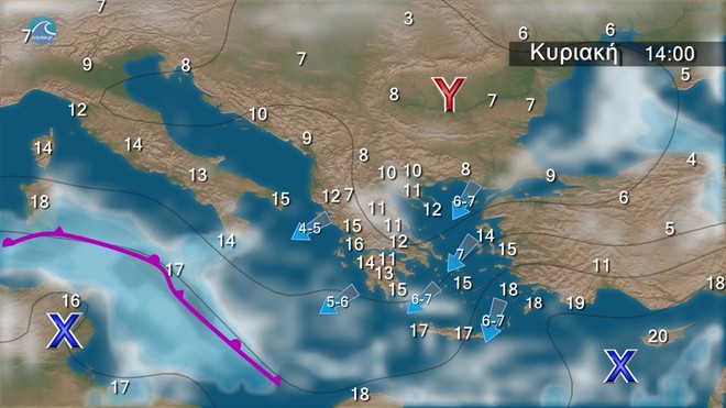 • Οι άνεμοι τοπικά στο Αιγαίο θα φτάσουν τα 7 με 8 μποφόρ